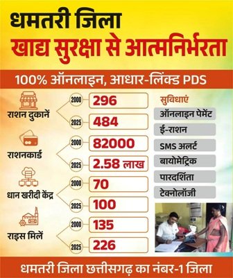 रजत जयंती वर्ष में यह उपलब्धियाँ इस बात का प्रमाण हैं कि धमतरी जिले का खाद्य, नागरिक आपूर्ति एवं उपभोक्ता संरक्षण विभाग जनसेवा, पारदर्शिता और तकनीकी सशक्तिकरण का प्रतीक बन गया है।