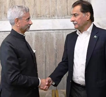 विदेश मंत्री ने पाकिस्तान के राजनेता सरदार अयाज सादिक से हाथ मिलाया. वह पाकिस्तान असेंबली के नेशनल असेंबली स्पीकर हैं. यह एक अन-ऑफिशियल मुलाकात है, जो दोनों नेताओं के बीच हुई है. दोनों के बीच आपसी संबंध को लेकर किसी भी तरह की चर्चा नहीं हुई है. इन तस्वीरों को दोनों देश के विदेश मंत्रालय से जारी भी नहीं किया गया है.
