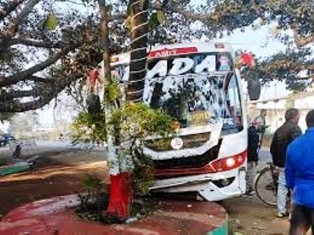 पेड़ से टकराकर रुकी बस, CCTV में कैद हादसा; यात्री सुरक्षित
