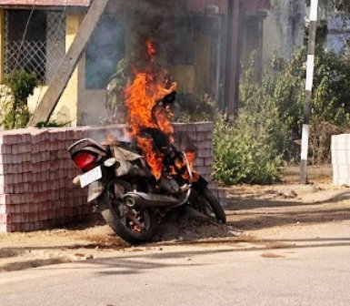 बताया कि घटना बिजली आफिस के करीब ट्रांसफार्मर के पास घटी जिसके कारण कुछ देर के लिए लाईन बंद कर दी गई। मेन रोड होने के कारण कुछ समय के लिए सड़क के दोनों ओर वाहनों की लाईन लग गई। चलती मोटर साइकिल में लगी आग को देखने के लिए घटना स्थल पर भीड़ उमड़ पड़ी।