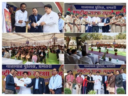 धमतरी/ धमतरी पुलिस द्वारा आयोजित राष्ट्रीय सड़क सुरक्षा माह–2026 का समापन शुक्रवार को गांधी मैदान में जागरूकता एवं सम्मान समारोह के साथ हुआ। कार्यक्रम “सड़क सुरक्षा–जीवन रक्षा” संदेश के साथ संपन्न हुआ। समारोह में जनप्रतिनिधियों, प्रशासनिक अधिकारियों एवं पुलिस अधिकारियों की गरिमामय उपस्थिति रही।