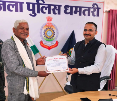 धमतरी पुलिस ने कहा कि ऐसे साहसी नागरिकों को सम्मानित कर समाज में सकारात्मक संदेश देने का प्रयास निरंतर किया जा रहा है।