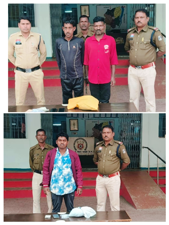 मुखबिर से सूचना मिलने पर थाना कुरूद पुलिस ने भरदा चौक स्थित यात्री प्रतीक्षालय के पास घेराबंदी कर दो व्यक्तियों को पकड़ा।