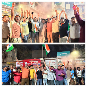 भारत की जीत के बाद शहर के प्रमुख चौक-चौराहों पर बड़ी संख्या में क्रिकेट प्रेमी एकत्र हुए और जमकर जश्न मनाया। खासकर घड़ी चौक का माहौल देखने लायक रहा, जहां युवाओं और क्रिकेट फैंस ने आतिशबाजी करते हुए भारत की जीत का जश्न मनाया। ढोल-नगाड़ों की गूंज के बीच भारत माता के जयकारे लगाए गए और लोगों ने एक-दूसरे को बधाई देकर खुशी साझा की।