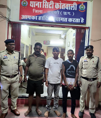मामले में पुलिस ने सुशील गिलहरे (38) निवासी साल्हेवार पारा धमतरी, खुमान साहू (40) निवासी कर्मा चौक धमतरी और लोचन देवांगन (32) निवासी रामपुर वार्ड धमतरी को गिरफ्तार किया है।