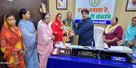 धमतरी/ धोबी समाज के नवनिर्वाचित जिला अध्यक्ष मंगलू निर्मलकर एवं महिला शाखा की जिला अध्यक्ष श्रीमती नीलू रजक ने नगर निगम महापौर श्री रामू रोहरा से सौजन्य मुलाकात की। इस अवसर पर समाज के अन्य पदाधिकारी एवं सदस्य भी उपस्थित रहे।