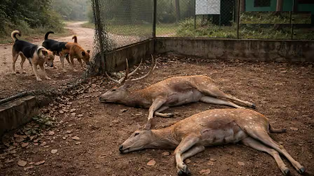 जानकारी के मुताबिक, 4 से 5 आवारा कुत्तों का झुंड पास के जंगल से वन परिसर में घुस आया. कुत्तों ने हिरणों के बाड़े को पार कर अंदर हमला कर दिया. इस हमले में 14 हिरणों की मौके पर ही मौत हो गई, जबकि एक गंभीर रूप से घायल हिरण ने रविवार को दम तोड़ दिया.