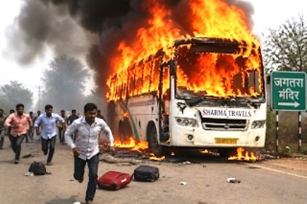 बालोद रोड पर चलती बस बनी आग का गोला, बारातियों ने कूदकर बचाई जान…